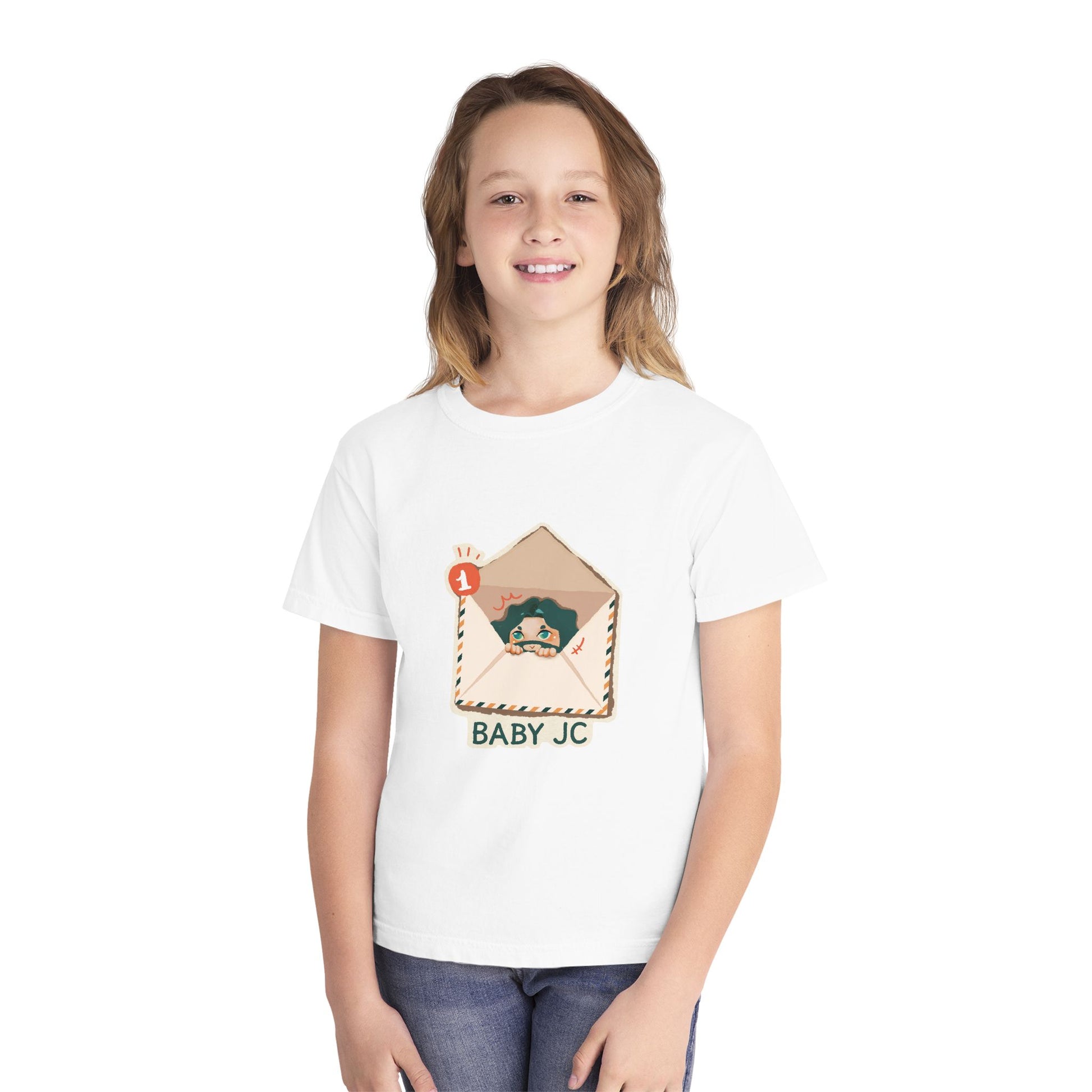 This tee features an adorable embroidered design of Baby Jesus resting in an envelope, symbolizing that God’s love is already delivered — directly to us. Perfect for school, playdates, family outings, or Sunday mornings, it offers a beautiful blend of comfort and purpose.
