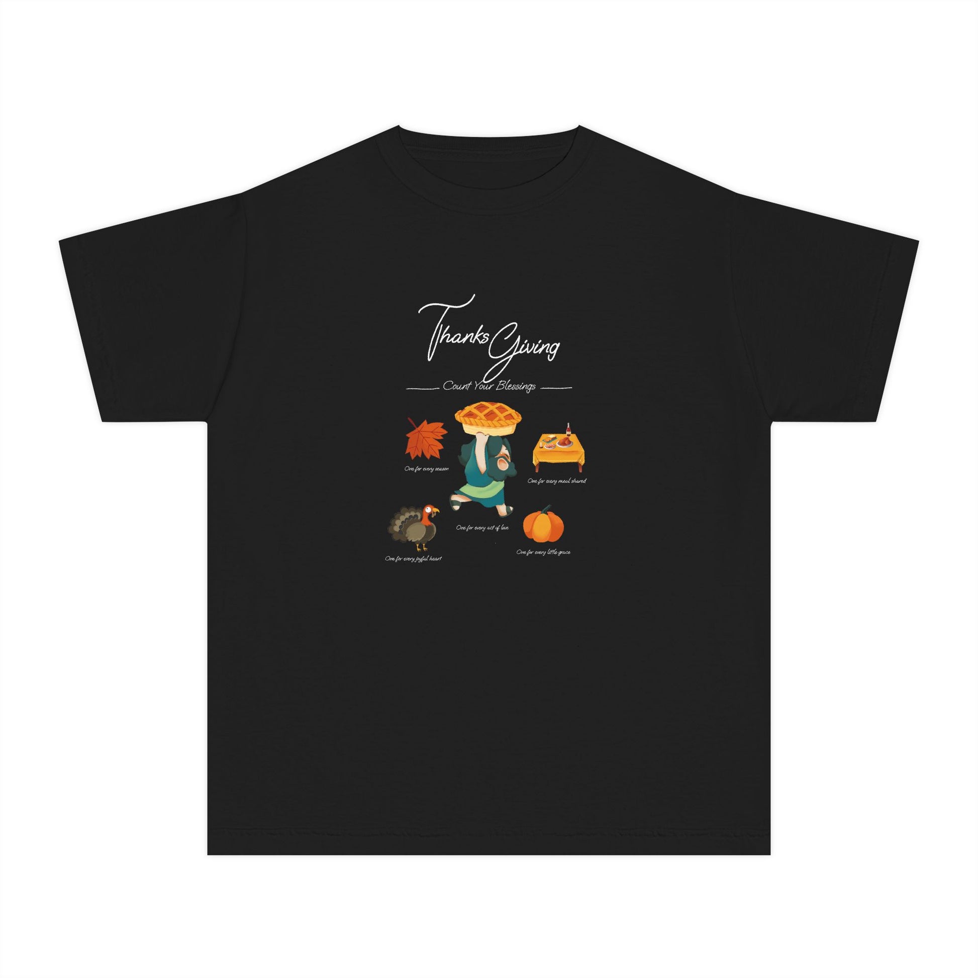 Kids will love the bright, friendly artwork 🌟, and parents will appreciate the message of thankfulness woven into the design. Whether layered under a hoodie or worn on its own, this tee brings sweetness, faith, and autumn charm to every outfit 🍁✨.